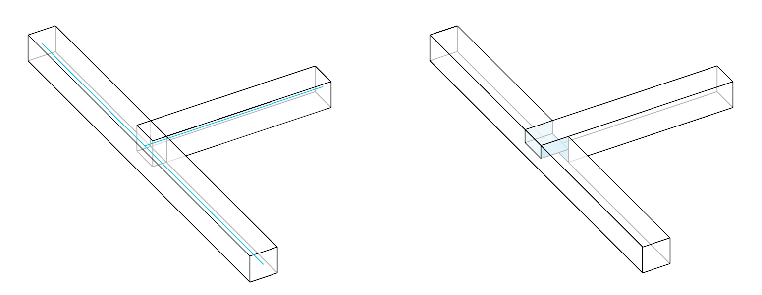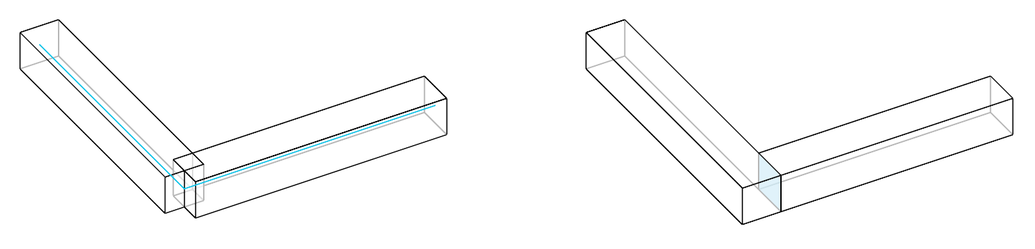 The L-Half Lap topology is when two beams meet at their ends at an angle. An L-Half Lap joint extends the two beams while removing the upper half of the overlap of one beam and the lower half of the overlaps the other to create a clean corner joint.